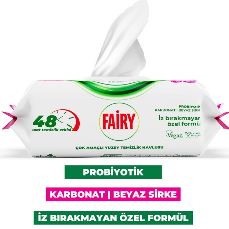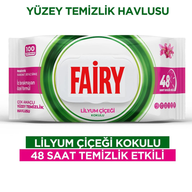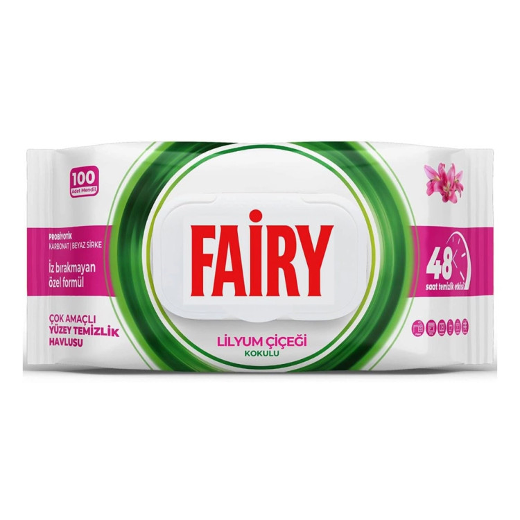 ✅ویژگیهای دستمال مرطوب سطوح چند منظوره فیری رایحه گل لیلیوم FAIRY LİLYUM ÇİÇEĞİ KOKULUI بسته 100 عددی